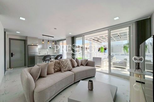 This modern 1-bedroom, 1-bathroom apartment is situated on the top floor and offers a generous 150 sqm of thoughtfully designed living space. Fully furnished, it features a European kitchen with a washing machine, a dining area, and a comfortable living area designed for both relaxation and functionality. The expansive balcony is ideal for unwinding, featuring outdoor lounge seating, sun loungers, a private outdoor shower, and pleasant partial sea views. The apartment also includes covered parking for added convenience.