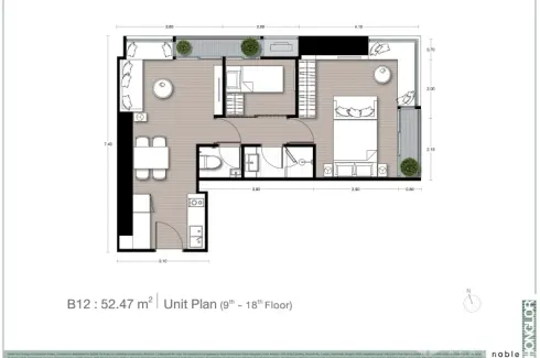 Discover a modern 1-bedroom, 1-bath condominium with approximately 52 sqm of efficient space in Thonglor, Watthana. The smart floor plan features an open-plan kitchen and dining area flowing to a bright living room and balcony, ideal for urban living. Well-proportioned bedrooms provide privacy and storage, while the contemporary bathroom includes a glass-enclosed shower. Quality finishes and large windows maximize natural light and airflow.