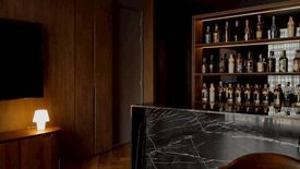 ✨ Highlights:This beautifully designed 1-bedroom unit at Pyne by Sansiri features a modern, dark-toned luxury interior with warm lighting and elegant materials such as black marble countertops, wood wall panels, and herringbone flooring.