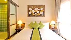 Located on the top floor with stunning and breathtaking sea view to the outlying islands. You will find our most exclusive condominium, the Penthouse. It is a 120 sq.m. condominium fully furnished with high ceiling, comprises of two big bedrooms, two bathrooms, large living room, a 25 sq.m. balcony and a spacious kitchen. The master bedroom has en suite bathroom and walk-in wardrobe.