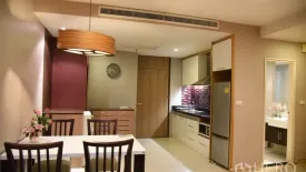 This bright 83 sqm, 2-bedroom, 2-bathroom condominium for rent in Khlong Toei offers a warm open-plan living and dining area with soft lighting, floor-to-ceiling curtains and wood floors. The practical kitchen comes equipped with cooktop, hood, fridge and microwave, while an in-unit washing machine adds everyday convenience.