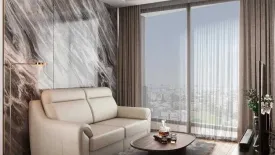 This contemporary 2-bedroom, 2-bath condominium for sale sits in Khlong Toei, Bangkok. Spanning 90 sq m, the residence opens to a bright living area framed by floor-to-ceiling windows and sweeping city views. Sophisticated finishes include a marble accent wall, warm wood flooring, designer pendant lighting and a plush rug. A wall-mounted TV and a long built-in work desk maximise function. The open-plan dining area pairs a statement table with a sleek kitchen featuring dark cabinetry and premium fixtures—ideal for everyday cooking and entertaining.