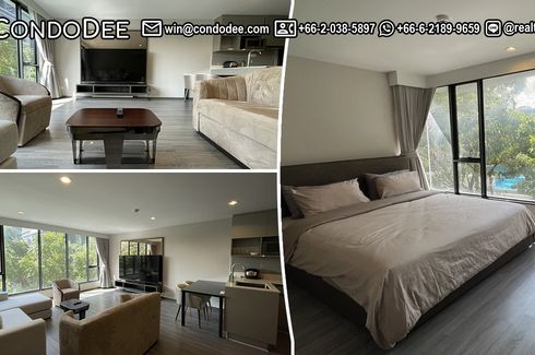 The condo features a pool and greenery tree view