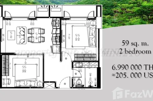 The price of an apartment of 59 m2 = 6.990.000 THB includes full furniture package