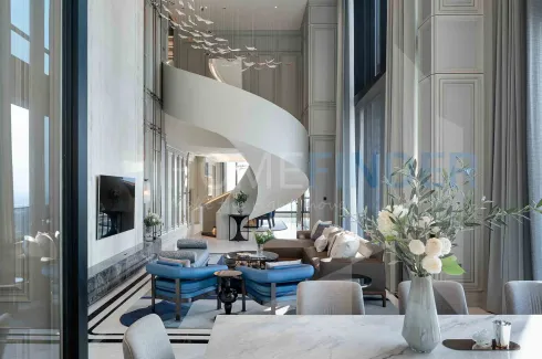 Super luxury duplex penthouse available at The Esse Sukhumvit 36 condominium in Bangkok's Thonglor area right off the BTS. One of a kind staircase made from special materials, Hermes sofa and furniture