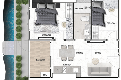 The two-bedroom residences are thoughtfully designed to promote everyday comfort and balance, featuring generous proportions, abundant natural light, and a clear separation between living and resting areas. Well-considered layouts offer privacy, flexibility, and a sense of calm, creating homes that adapt seamlessly to daily life while supporting long-term well-being.