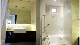 Bright 2-bedroom, 2-bath condominium in Si Racha offers 64 sq m of refined living. The open-plan lounge and dining area feature warm wood floors, cove lighting and a wide window framing city and sea glimpses. A practical kitchenette with light-wood cabinetry sits beside the living space. The master bedroom includes a mirrored wardrobe, while the sleek bathroom adds hotel-style comfort with a bathtub and handheld shower. A second bedroom suits guests or a home office.