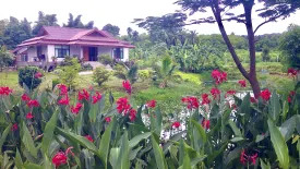 The newly built house is on a solid raised platform and features a very distinctive roofing style, which gives a lofty spacious interior. The design incorporates a walk-through living-room/kitchen/pantry arrangement with 2 separate air-con bedroom/bathroom suites. The outside 360 degree walk-around raised veranda gives eye-pleasing views of the entire property.