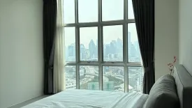 Ratchathewi condo for rent, 114 sq.m with 3 bedrooms and 2 bathrooms, moments from BTS Victory Monument. The open‑plan living and dining area features a glass-top table and balcony with sweeping skyline views. A separate enclosed kitchen comes fitted with cooktop, hood, microwave and full-size refrigerator. The oversized primary bedroom has floor-to-ceiling windows, mirrored wardrobes and a vanity, while two additional bedrooms are ideal for family, guests or a home office. Bathrooms include a soaking tub and a shower. A study nook, ample storage and air-conditioning complete this bright home.
