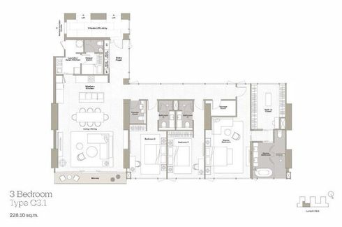 New Luxury condo for sale at Dusit Parkside. 3 bedrooms with living area 228.10 sq.m. Fully fitted.
