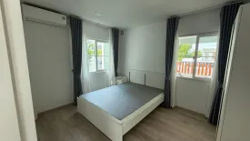 This bright two-storey detached house for rent in Bang Phli, Samut Prakan offers 165 sqm of usable space on a 50 sq wah plot. The ground floor features an airy open-plan living and dining area with large windows and sliding glass doors that connect to the front garden. A sleek TV wall, sectional sofa and dining set create a comfortable social hub. An enclosed kitchen is ideal for everyday cooking, complete with counter space, sink, built-in cooktop, range hood and a refrigerator. A well-finished bathroom with shower is also on this level.