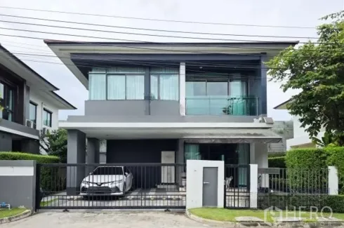 Modern 2-storey detached house for sale in Setthasiri Krungthep Kreetha, Bang Kapi. The home offers 165 sq.m. of usable space on 59.4 sq.wah of land (≈238 sq.m., ≈0.15 rai) with 3 bedrooms, 3 bathrooms and 2-car parking. Light-filled living and dining open to the garden through wide sliding glass, while the master suite enjoys a balcony view. Private lawns and hedges wrap the house, and bathrooms feature contemporary fittings for easy daily living.