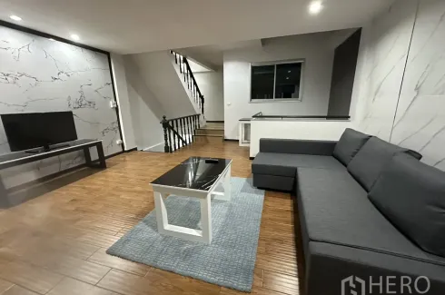 Presented for rent, this refreshed Home Office in Khlong Toei, Bangkok offers 200 sqm of usable space on 24 sq wah (approx. 96 sqm or about 0.06 rai). The three-storey facade features a secure metal gate and a covered forecourt suitable for parking. Inside, generous open-plan floors are finished with wood-look and stone-look tiles, highlighted by marble-effect feature walls, recessed lighting and a statement chandelier. Large windows and sliding glass doors bring air and light into the work and living areas. An internal atrium with a slatted walkway adds ventilation and architectural interest. Open-plan floors allow flexible layouts for meeting and work zones.
