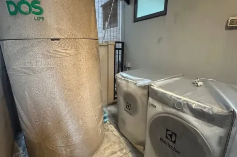 Set in Thap Chang, Saphan Sung, this 3-bedroom, 3-bath townhouse offers 152 sqm of usable area on a 19 sq wah plot. Bright open-plan living flows to a stylish kitchen with long breakfast island, built-in storage and a glass-partitioned utility zone. Wood-look herringbone floors, large windows with sheer and blackout curtains, and air-conditioning create airy comfort. The bedrooms are spacious, while modern bathrooms feature glass showers. A covered service yard holds laundry and water tank, and the front driveway provides off‑street parking.