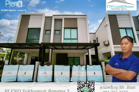 For rent 2-story townhome in the Pleno Sukhumvit-Bangna 3. The front of the house is 6.65 meters wide, can park 2 cars, near Mega Bangna