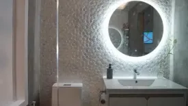 Stylish 3-bedroom, 4-bath townhouse for rent in Watthana, moments from BTS Phra Khanong. Offering 406 sqm of usable space on land 44 sq.w. (approx. 176 sqm, ~0.11 rai), this home pairs generous proportions with warm modern design. The light-filled living area features garden-view windows, coffered ceilings and a built-in media wall. An open dining zone connects to a sleek island kitchen with stainless hood and ample storage. Bedrooms are spacious, including a master with mirrored wardrobes and an en-suite, plus a versatile loft room and chic bathrooms. A private rooftop garden terrace invites relaxed outdoor living.