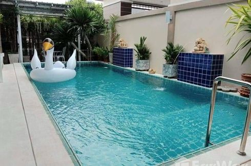 Single house in contemporary style with a private swimming pool on a 270 square meter plot. The house features 3 bedrooms, 3 bathrooms, a living room, a dining room, and 2 kitchens. There is indoor parking for 2 cars. The house is fully furnished and includes 4 TVs, 4 air conditioners, a water heater, a washing machine, and kitchen appliances. Additionally, the house comes with CCTV, a drinking water filter, a household water filter, and a grease trap.