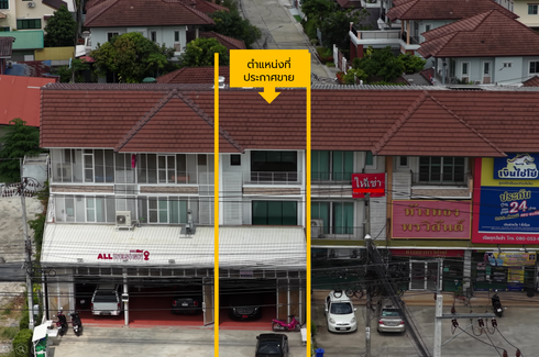For Sale: 3-Storey Commercial Building (Shophouse) on Main Road – 28 sq. wah (112 sqm) of land in front of Laddaville 1-2 Village, located on Ban Kluai - Sai Noi Road, Phimonrat, Bang Bua Thong, Nonthaburi. Land is elevated to street level. Parking for 4 cars. Perfect for business, office, or commercial use.