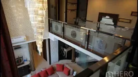 This expansive 229 sqm, 4-bedroom, 3-bathroom duplex condominium in Nana, Watthana, showcases a dramatic double-height living room with a statement chandelier, glass balustrades, and a feature fireplace. The open-plan lounge flows to a private balcony with broad city views, while a sleek breakfast bar, built-in shelving, and an elegant staircase elevate the space. Bedrooms are bright and well appointed with fitted storage and work desks; bathrooms include a deep soaking tub and modern fixtures, plus in-room electronic safes for peace of mind.