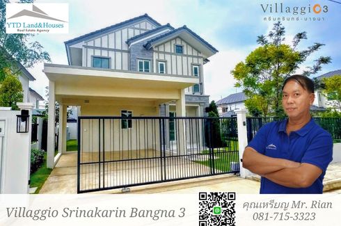 For rent, 2-storey detached house, Villaggio 3 Srinakarin-Bangna. located in front of the lake, has a maid's room and a maid's bathroom separate from the house, a beautiful house.