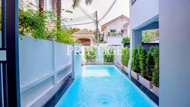 This 2-storey pool villa features 4 bedrooms and 4 bathrooms. It sits on a 300 sq m plot of land and offers 200 sq m of living space. The villa comes fully furnished, with a European kitchen, dining area, living area, and a lush garden with a BBQ area overlooking a 7x3 meter pool as well as covered parking.