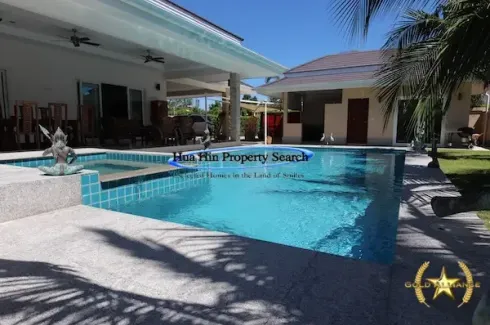 New Pool Villa located just 10-minute drive from every convenience of Hua Hin town and beach and only 5-minute drive to Palm Hills Golf Course. Consisting of spacious living room/open kitchen, 4/4 bed/bathrooms,the 4th bedroom is located in an external guest/maidroom with pool shower and an outside fully furnished BBQ kitchen. The house is furnished (most furniture included apart from some rare items) and has a fully equipped European style kitchen. Large under roof carpark with electronic gate and space for 2 cars. The carpark has a depot/ washing machine room. There is a well establish garden with water fountain with koi fish and a private 5x10 meter swimming pool with Jacuzzi.