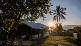 The expansive yard sits on nearly a full rai of land, featuring a lush garden with fruit-bearing trees, including banana, rose apple, star fruit, tamarind, coconut, and more. A large open grassy area provides plenty of space for children to play, gardening, or enjoying the peaceful natural surroundings.