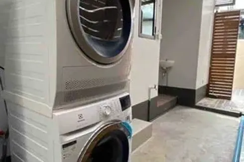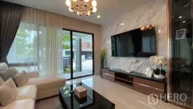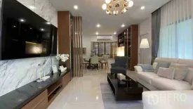 Contemporary 4-bedroom, 5-bath detached house in Prawet, Bangkok. Enjoy 299 sqm of usable space on a 93 sqw plot (approx. 372 sqm or 0.23 rai). The light-filled open plan features a marble TV wall, chandelier, and generous lounge flowing to a stylish dining area with built-in cabinetry and work desk. Upstairs, a spacious master suite opens to a balcony, while a dedicated laundry zone with stacked washer/dryer keeps chores convenient. Outdoors, relax on the covered terrace beside a landscaped lawn. A wide driveway and double carport add everyday ease.