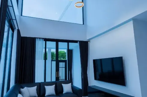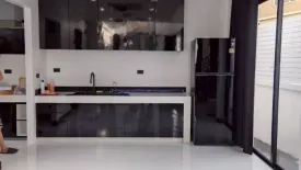 Modern three-storey detached house offering 310 sqm of usable space in Wang Thonglang, Bangkok. The home features a dramatic double-height living room with a sculptural ring chandelier, expansive windows and sleek tiled floors. A bright open kitchen comes with glossy cabinetry and sliding glass doors, while five comfortable bedrooms include generous builtâins and walkâin closets. Three designer bathrooms showcase rain showers and contemporary mosaic tiles. Additional highlights include energyâefficient air conditioning, abundant storage and a secure gated frontage.