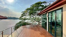 This impressive three-storey residence features five bedrooms and six bathrooms, set on a 256 sqm land plot and offering approximately 450 sqm of spacious living area across all three floors. The home boasts a modern yet timeless façade and comes fully furnished. When entering the house through a proper hall, you will then be struck by the exceptional atmosphere created by the ample living room opening onto a wooden deck along the Chao Phraya River. This expansive living room features a double-volume ceiling, enhanced by large windows that flood the space with abundant natural light, creating a bright, airy atmosphere throughout. There is also a dining and bar area, a European kitchen, and an office room. On the second floor, you will find four bedrooms and three bathrooms and on the top floor, a large master bedroom with two dressing rooms and two bathrooms and a multifunctional room that can easily be converted into a private gym or studio. Additional highlights include a sauna room connected to a jacuzzi, opening onto a large balcony with stunning river views. There is also a maid's room and many storage spaces throughout the house.
