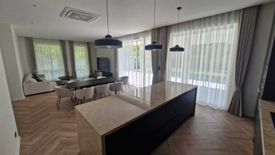 This stunning 5-bedroom, 3-bathroom pool villa is situated in a tranquil and affluent neighborhood in Nam Phrae, Hang Dong near some of the best international schools in Chiang Mai. The Residence sits on almost 1,000sqm of land, which is secured by a perimeter wall, an electric gate and a CCTV system. The floor space was deliberately spread across 3 structures whereas master bedroom ensuite and 2 kid’s bedrooms with guest bathroom are located in the main house, where a large living room and high-end kitchen form the center living piece. The 2nd structure is the pool house which can serve various purposes: Depending on your needs, it could become the 4th and 5th bedroom, or two home offices or a combination thereof. Could also be used as a guest bedroom with living area, a granny flat, or a gym. The pool house also boasts a small yet fully functional bathroom. The carport forms the 3rd structure on the property and can hold 2 large-sized cars and conveniently has a storage/laundry room included. The entire living space indoors boasts a modern, high quality SPC flooring in fishbone wood design. The kitchen is state of the art with high-end finishes and appliances. Cabinets are in matt black with Italian marble countertop and back splash. Kitchen appliances include a built-in fridge, freezer, dishwasher, oven, microwave, hood and oversized induction stove. The 13m x 4m swimming pool is fitted with imported tiles and can be accessed directly from the spacious terrace. The terrace is partially covered to cater for both an outdoor dining area and sun deck/lounge area. Large trees have been planted already and grass has been laid out too, which for convenience is irrigated by an automated sprinkler system. Spotlights illuminate the garden at night creating a wonderful atmosphere all around in what could become our very own sanctuary.