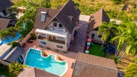 Stunning Period three story house located in the heart of Naiharn. The house has a large Private bar/sala with built in BBQ area overlooking a large garden and kids play area. It also has its own private steam room fitted out with a bluetooth sound system and mood lighting, you can slip straight into the pool from the steam room or take a dip in the ice bath. 5 Bedrooms 4 Bathrooms 2 living rooms Open planned kitchen/diner Separate dining room This house is perfect for a large family with ample space to enjoy together but also enough space to grab some down time. The house has two separate land title deeds with an option to develop another house in the garden.