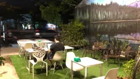 Position your brand in a high-visibility spot just a short walk from BTS Phra Khanong. This 126 sqm retail space sits on 64 sqw of land (approx. 256 sqm, ~0.16 rai), offering both indoor and outdoor zones. Interiors feature a ready-to-use bar counter, marble-top tables, ambient chandeliers, and large grid windows for natural light. A flexible back room doubles as a studio or event hall with projector screen and long bench seating, while a garden terrace with artificial grass adds extra covers and street presence.