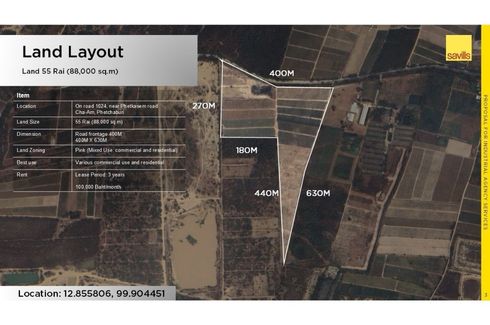 55 Rai Land for Lease in Cha-Am, Phetchaburi near Phetkasem Road
