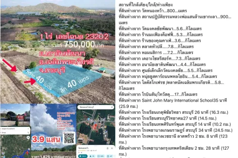 This property is a 1,600 SqM land plot that is available for sale. It is located in Khao Din Phatthana, Saraburi. You can buy this land for a base price of ฿750,000 (฿467/SqM).