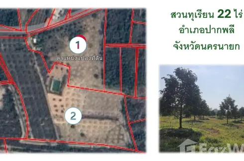 This property is a 33,600 SqM land plot that is available for sale. It is located in Khok Kruat, Nakhon Nayok. You can buy this land for a base price of ฿42,000,000 (฿1,250/SqM).