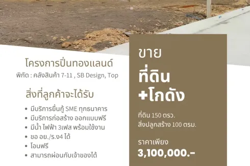 This property is a 600 SqM land plot that is available for sale. It is part of the Pinthongland Factory Village project in Lahan, Nonthaburi. You can buy this land for a base price of ฿3,100,000 (฿5,170/SqM).