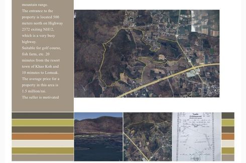 Located at the base of the mountain range 20 min from Khao Koh 10 min from LomSak just off of NH12 very busy hiway. The perfect area for a golf course, there are only 2 other courses in Pretchabun a small one in Pretchabun city and another just south of the city. The entire province is showing a steady increase in tourism and business. Price are on a continuous increase, this land is going well below market value from a motivated sell. Don't miss this opportunity!