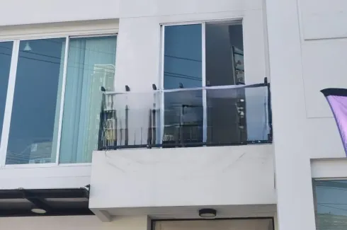 Set your business up for success with this 110 sqm home office for rent in {GPSLOC}, Bangkok. The contemporary facade showcases a full-width glass shopfront and a compact balcony with tinted railing, drawing natural light into bright, open-plan interiors. Sliding windows and high ceilings create an airy work environment that suits a showroom, creative studio, clinic or SME headquarters. Ground-floor entry provides easy customer access and strong street visibility for signage.