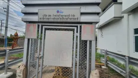 This Warehouse for rent is positioned in Phra Nakhon Si Ayutthaya district, Phra Nakhon Si Ayutthaya province. The frontage shows a substantial industrial building with a fenced perimeter and street-side access. A wide paved apron and side driveway provide room for vehicle movements and on-site parking. The main elevation includes large windows and an attached office-style block, ideal for administrative or reception use. A secured utility kiosk is set beside the building for services.