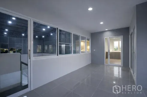 Position your operations in a clean, modern warehouse for rent in Bang Kapi, Bangkok. The property offers 513 sqm of usable space, set on 112 sq wah of land (approx. 448 sqm or 0.28 rai). The main warehouse hall features a high-clear span, durable concrete floor, LED lighting and translucent roof panels for daylight. Louvered side panels encourage airflow, while a wide roller shutter supports easy loading and unloading. A sturdy internal staircase leads to a mezzanine office block with large windows overlooking the floor to streamline supervision. Internal windows along the corridor allow clear sightlines between the warehouse and offices, improving coordination.