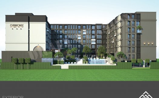 Chamonix คอนโดมิเนียมสไตล์ โมเดิร์นคลาสสิคปารีเซียง เจ้าของโครงการ Room Factory Co.,Ltd. พื้นที่โครงการประมาณ 2-1-17 ไร่ คอนโดสูง 8 ชั้น 253 ยูนิต ขนาดพื้นที่ใช้สอยเริ่มตั้งแต่ 25.00-51.00 ตร.ม. บนทำเล ศักยภาพ ศรีราชา-แหลมฉบัง ท่ามกลางแหล่งงาน แหล่งศึกษาสิ่งอำนวยความสะดวก ที่จอดรถCo working spaceฟิตเนสซาวน่าระบบรักษาความปลอดภัย