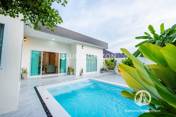 Bright 3-bedroom, 2-bathroom villa in Panalee Banna Village on 108sqw of land with 190sqm living space. Fully furnished with a European kitchen, built-in appliances, TVs in all rooms, and a utility room with a washer and dryer.Enjoy a large, covered rear area featuring a dining table, sofa set, gardens, a storage shed, and an underground water tank. Ownership is under company name, with transfer fees...