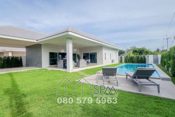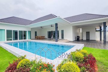 Bali-style pool Villa in Hua Hin at Baan Phuttharaksa with 5 Villas next to Hillside Hamlet3, just 10-minutes’ drive west of Hua Hin city center.The Villa features a spacious living-dining lounge, fully fitted European style kitchen, 4 large bedrooms with ensuite bathrooms, separate office room and outside pavilion with Thai/BBQ kitchen. All rooms have exits directly to the terrace and a 42 sqm (12x3,5...